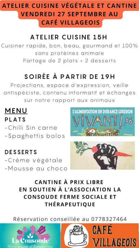 Atelier cuisine végétale et cantine du vendredi 27 septembre